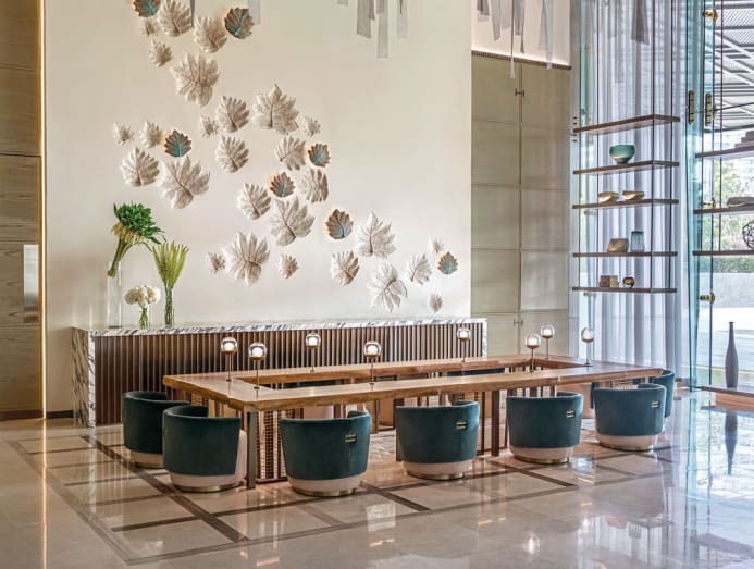 "The Residences at Standard mandarin Oriental has been designed with influences derived from both the organic landscape and the unique vernacular architecture of Bangkok today," explained Wang, the founder of her eponymous studio. "By reflecting the qualities of the river – from the organic lines of the river bed, the raw edges and geometric forms of rocks and shells, and the various tones of river sediment – a strong foundation for the interior concept was formed."